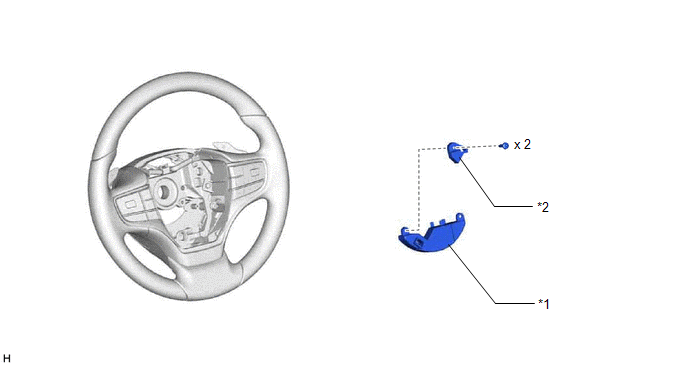 | *1 | HEATED STEERING WHEEL CONTROLLER (STEERING VIBRATION ECU) | *2 | STEERING WHEEL PAD BRACKET |