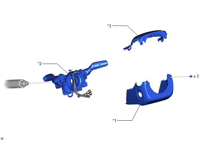 | *1 | LOWER STEERING COLUMN COVER SUB-ASSEMBLY | *2 | TURN SIGNAL SWITCH ASSEMBLY WITH SPIRAL CABLE SUB-ASSEMBLY |