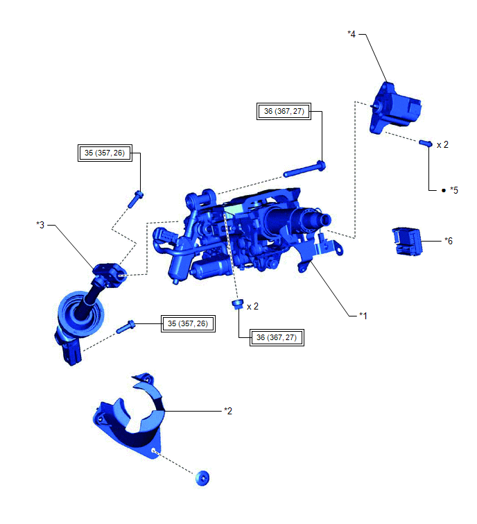 | *3 | STEERING INTERMEDIATE SHAFT ASSEMBLY | *4 | STEERING LOCK ACTUATOR ASSEMBLY |
