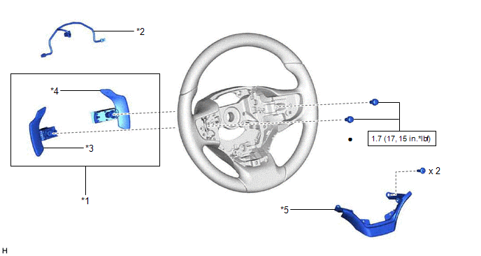 | *1 | HEATED STEERING WHEEL CONTROLLER (STEERING VIBRATION ECU) | *2 | STEERING WHEEL PAD BRACKET |