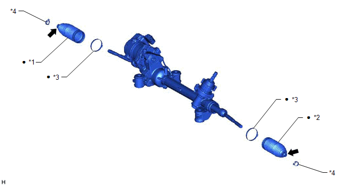 | *1 | NO. 1 STEERING RACK BOOT | *2 | NO. 2 STEERING RACK BOOT |