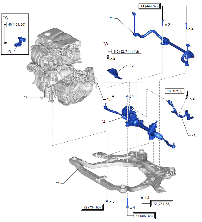 | *7 | FRONT ENGINE MOUNTING INSULATOR | *8 | REAR ENGINE MOUNTING INSULATOR |