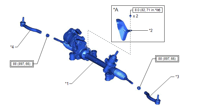 | *1 | RACK AND PINION POWER STEERING GEAR ASSEMBLY | *2 | STEERING GEAR HEAT INSULATOR |