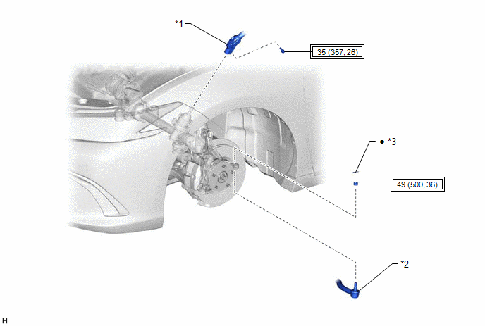 | *1 | STEERING INTERMEDIATE SHAFT ASSEMBLY | *2 | TIE ROD ASSEMBLY LH |