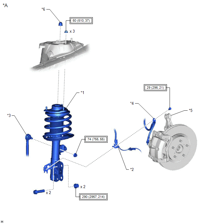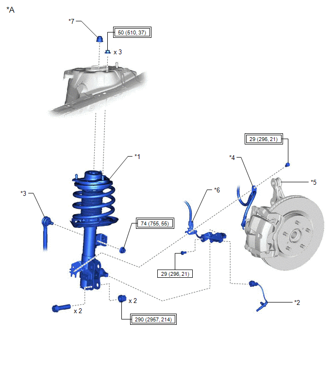 | *1 | FRONT SHOCK ABSORBER WITH COIL SPRING | *2 | FRONT SPEED SENSOR |
