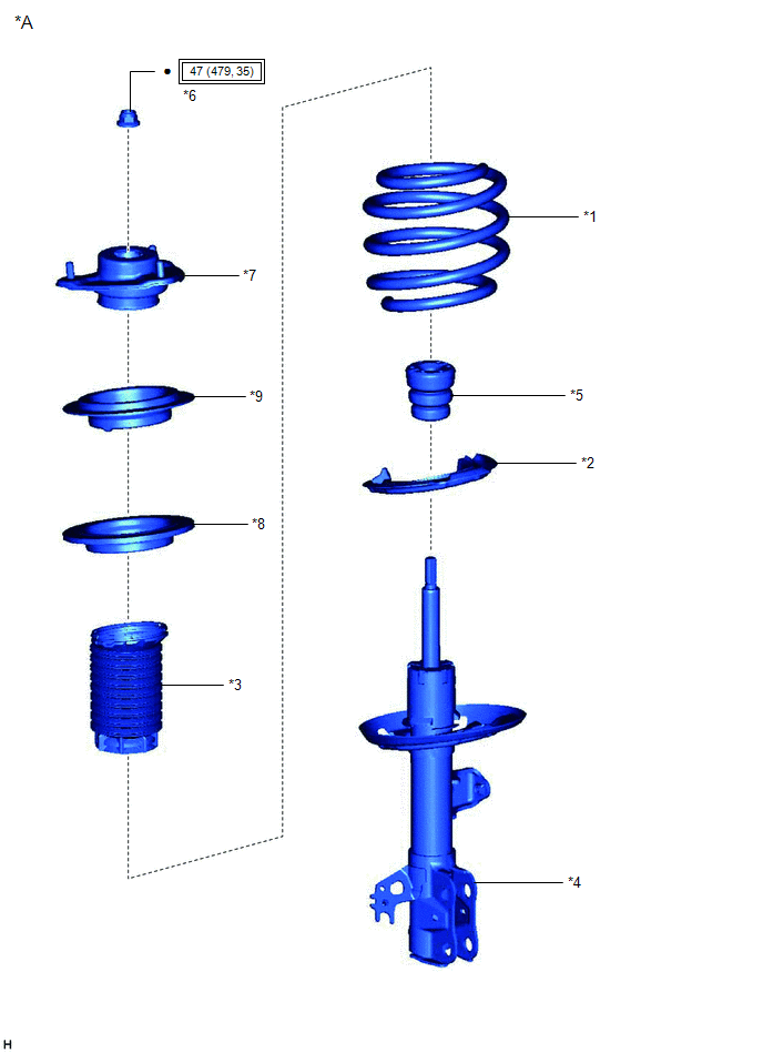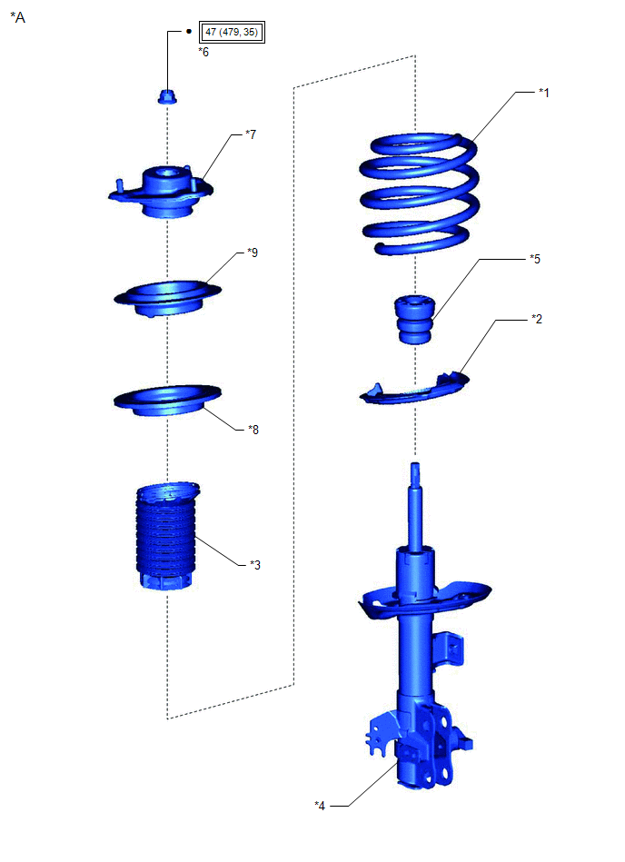 | *1 | FRONT COIL SPRING | *2 | FRONT LOWER COIL SPRING INSULATOR |