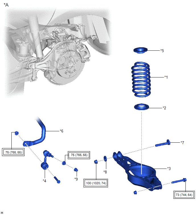 | *5 | REAR UPPER COIL SPRING INSULATOR | *6 | REAR STABILIZER BAR |