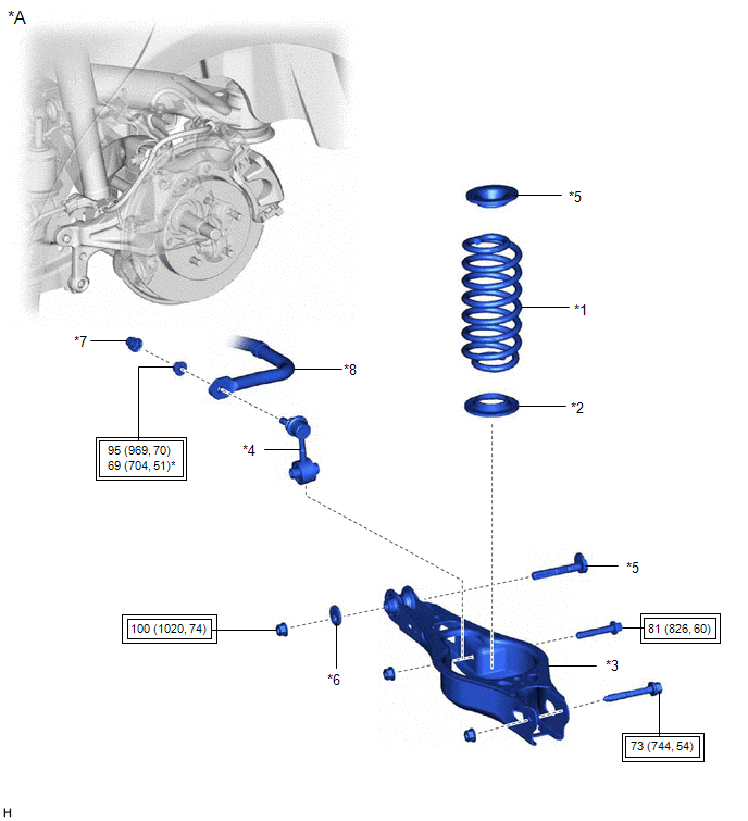 | *1 | REAR COIL SPRING | *2 | REAR LOWER COIL SPRING INSULATOR |