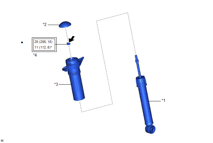 | *1 | REAR SHOCK ABSORBER ASSEMBLY | *2 | REAR SHOCK ABSORBER CAP |