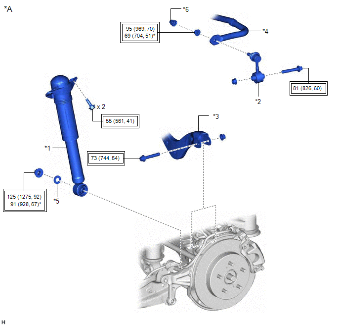 | *1 | REAR SHOCK ABSORBER ASSEMBLY | *2 | REAR STABILIZER LINK ASSEMBLY |