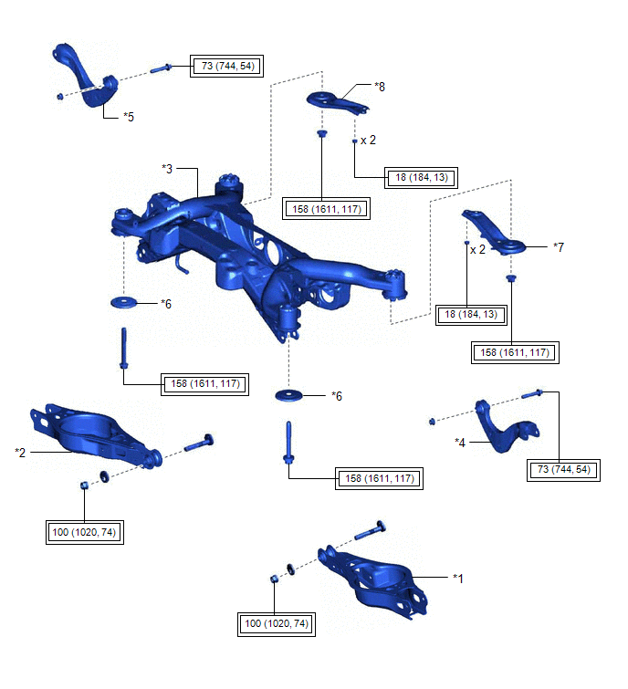 | *3 | REAR SUSPENSION MEMBER SUB-ASSEMBLY | *4 | REAR UPPER CONTROL ARM ASSEMBLY LH |