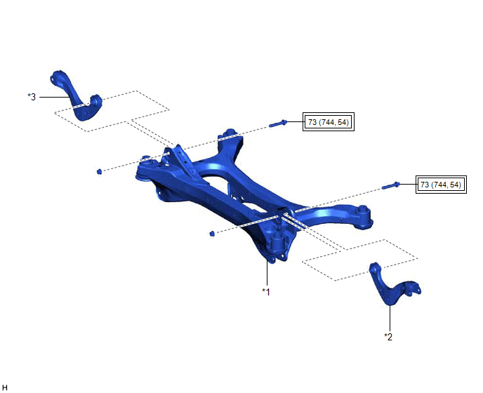 | *1 | REAR SUSPENSION MEMBER SUB-ASSEMBLY | *2 | REAR UPPER CONTROL ARM ASSEMBLY LH |