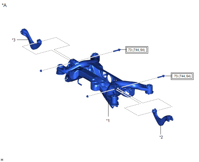 | *1 | REAR SUSPENSION MEMBER SUB-ASSEMBLY | *2 | REAR UPPER CONTROL ARM ASSEMBLY LH |