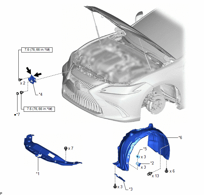 | *3 | FRONT WHEEL OPENING EXTENSION PAD LH | *4 | HOOD LOCK ASSEMBLY |