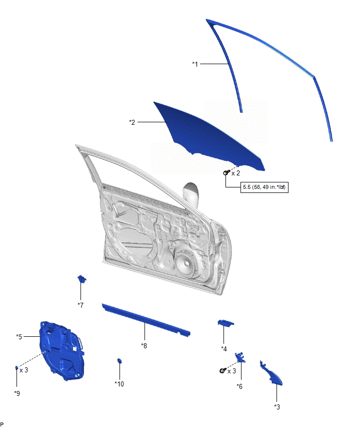 | *5 | FRONT DOOR SERVICE HOLE COVER | *6 | FRONT DOOR TRIM BRACKET |