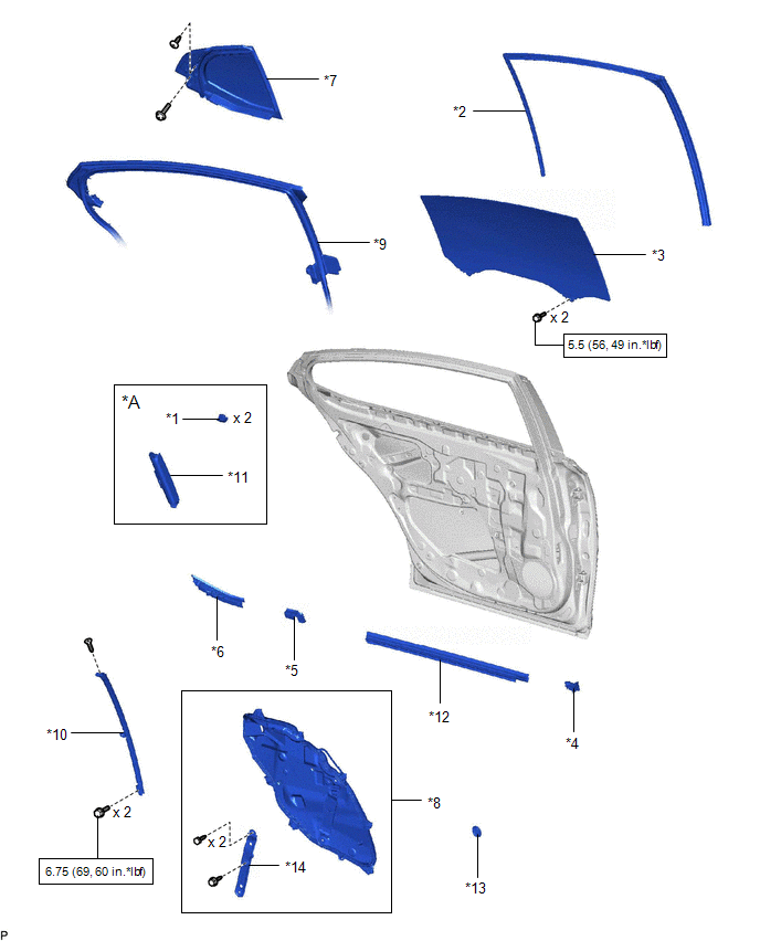 | *9 | REAR DOOR WEATHERSTRIP | *10 | REAR DOOR WINDOW DIVISION BAR SUB-ASSEMBLY |