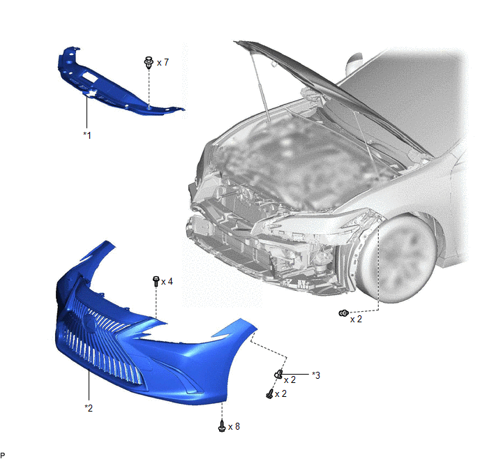 | *1 | COOL AIR INTAKE DUCT SEAL | *2 | FRONT BUMPER ASSEMBLY |