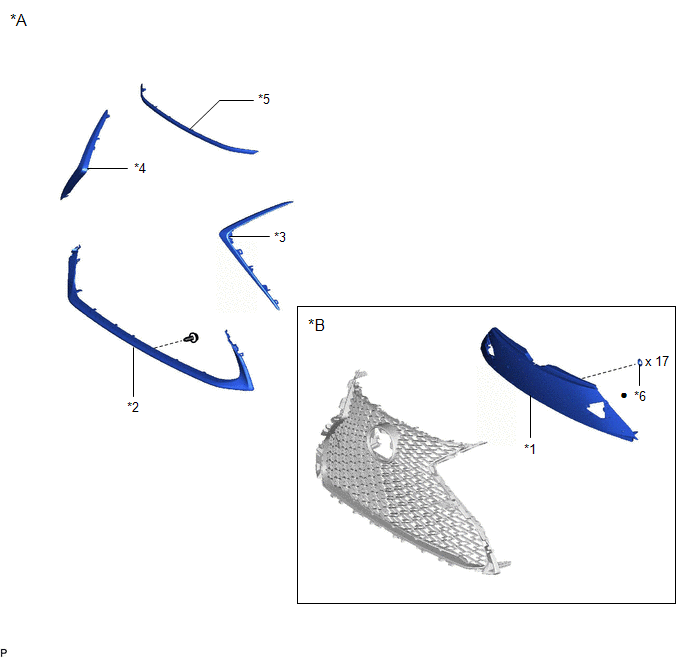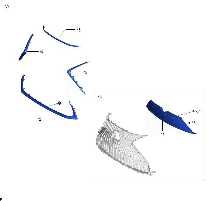 | *5 | UPPER RADIATOR GRILLE MOULDING | *6 | SPRING NUT |