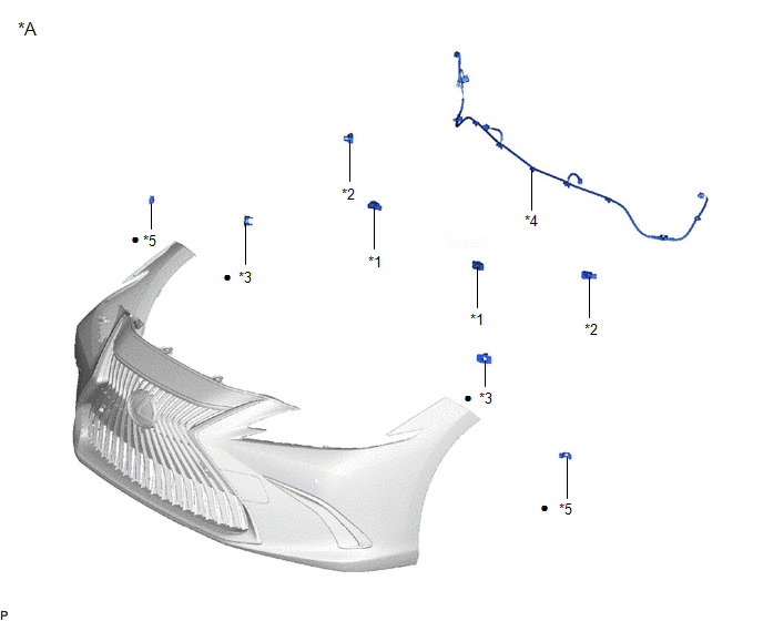 | *3 | FRONT CORNER ULTRASONIC SENSOR RETAINER | *4 | NO. 4 ENGINE ROOM WIRE |
