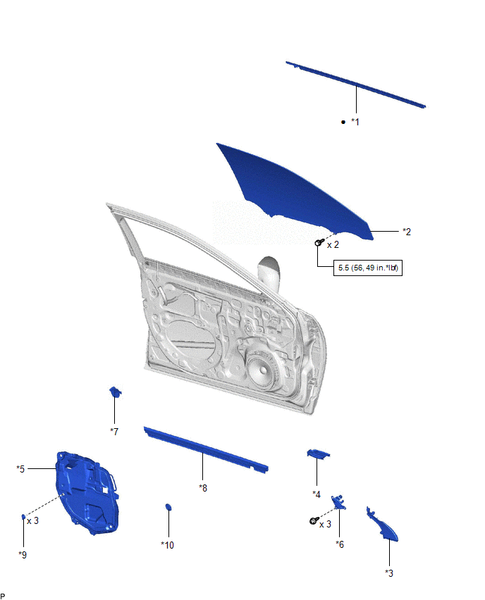| *5 | FRONT DOOR SERVICE HOLE COVER | *6 | FRONT DOOR TRIM BRACKET |