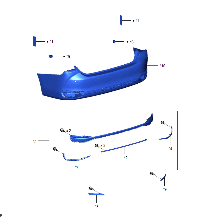 | *9 | REFLEX REFLECTOR ASSEMBLY RH | *10 | REAR BUMPER COVER |