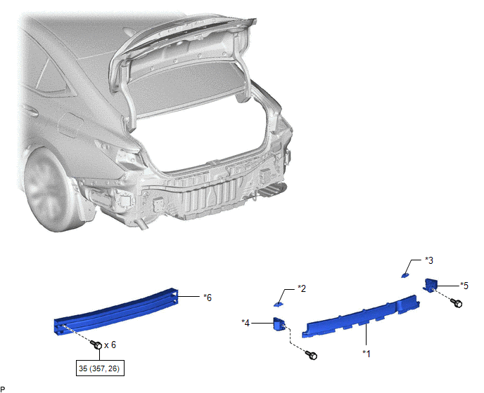 | *5 | REAR BUMPER PROTECTOR RH | *6 | REAR BUMPER REINFORCEMENT |