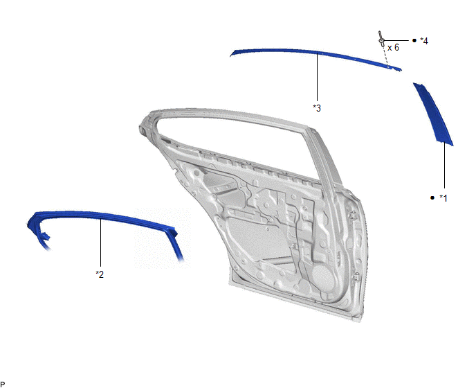 | *3 | REAR DOOR WINDOW FRAME MOULDING SUB-ASSEMBLY | *4 | RIVET |