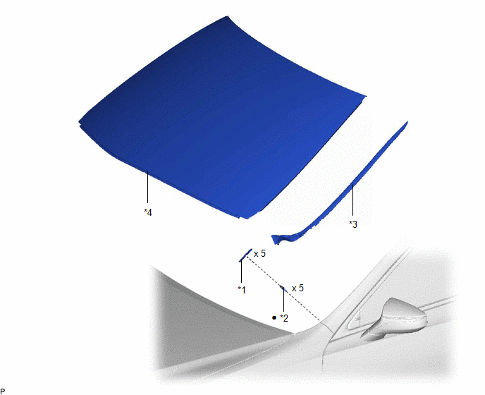 | *1 | NO. 1 WINDSHIELD OUTSIDE MOULDING CLIP | *2 | NO. 3 WINDSHIELD OUTSIDE MOULDING CLIP |