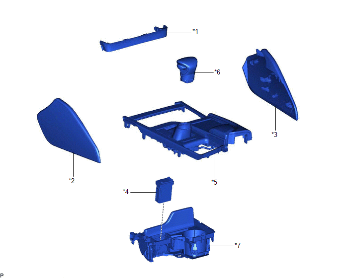 | *5 | REAR UPPER CONSOLE PANEL SUB-ASSEMBLY | *6 | SHIFT LEVER KNOB SUB-ASSEMBLY |