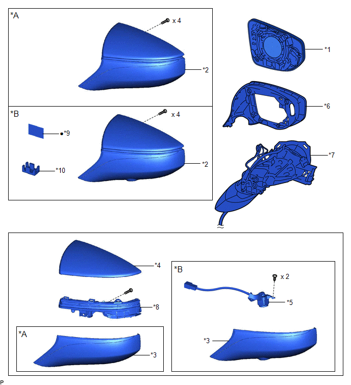 | *3 | OUTER MIRROR LOWER COVER | *4 | OUTER MIRROR UPPER COVER |