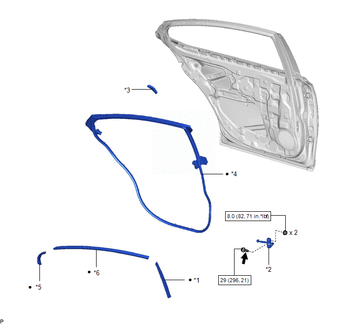 | *5 | REAR DOOR NO. 2 VENT SEAL | *6 | REAR DOOR PANEL PROTECTOR |