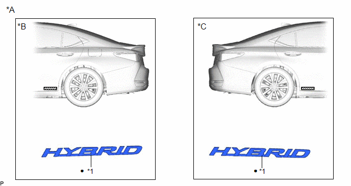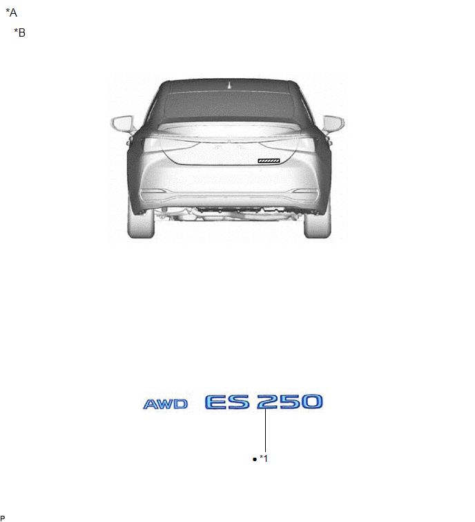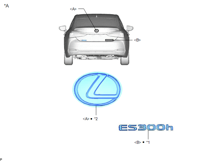 | *1 | NO. 2 LUGGAGE COMPARTMENT DOOR NAME PLATE | *2 | SYMBOL EMBLEM |