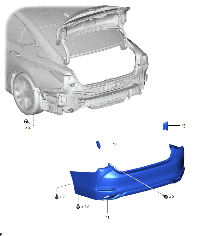| *1 | REAR BUMPER ASSEMBLY | *2 | REAR COMBINATION LIGHT COVER LH |