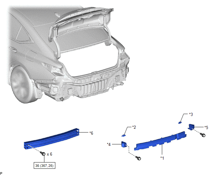 | *5 | REAR BUMPER PROTECTOR RH | *6 | REAR BUMPER REINFORCEMENT |