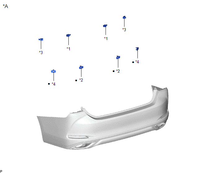| *3 | NO. 2 REAR BUMPER SIDE RETAINER LH | *4 | NO. 2 REAR BUMPER SIDE RETAINER RH |