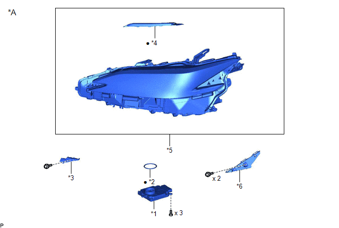| *5 | HEADLIGHT UNIT ASSEMBLY | *6 | NO. 2 HEADLIGHT FITTING RIM |