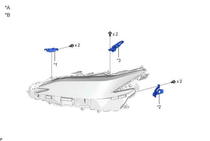 | *1 | HEADLIGHT ECU SUB-ASSEMBLY | *2 | HEADLIGHT GASKET |