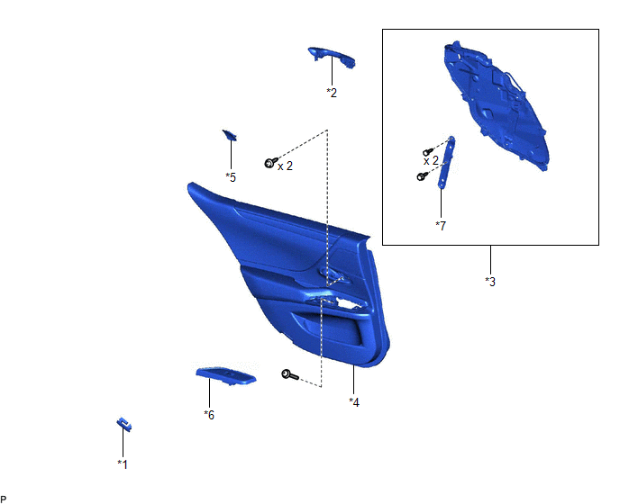| *3 | REAR DOOR SERVICE HOLE COVER | *4 | REAR DOOR TRIM BOARD SUB-ASSEMBLY |
