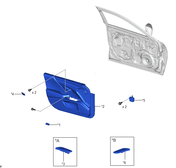 | *3 | MULTIPLEX NETWORK MASTER SWITCH ASSEMBLY WITH FRONT DOOR UPPER ARMREST BASE PANEL | *4 | NO. 2 DOOR TRIM PAD |