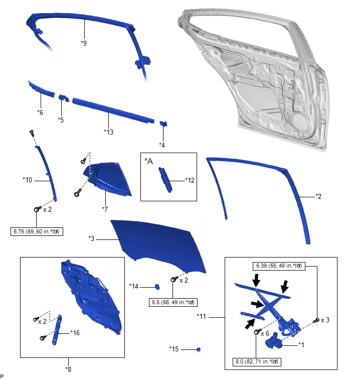 | *11 | REAR DOOR WINDOW REGULATOR ASSEMBLY | *12 | REAR SIDE CURTAIN ASSEMBLY |