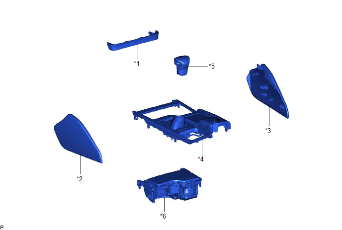 | *5 | SHIFT LEVER KNOB SUB-ASSEMBLY | *6 | UPPER CONSOLE PANEL SUB-ASSEMBLY |