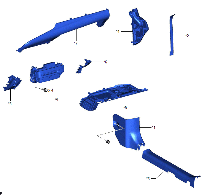 | *7 | LOWER INSTRUMENT PANEL SUB-ASSEMBLY | *8 | NO. 2 INSTRUMENT PANEL UNDER COVER SUB-ASSEMBLY |