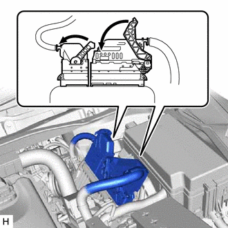 (e) Connect the cable to the negative (-) auxiliary battery terminal.