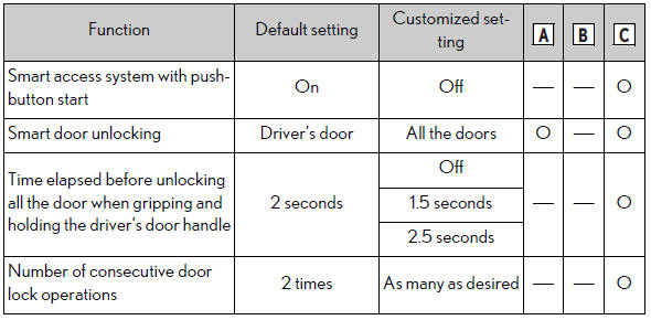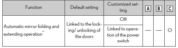 ■During customization As the hybrid system needs to be operating during customization, ensure that the vehicle is parked in a place with adequate ventilation. In a closed area such as a garage, exhaust gases including harmful carbon monoxide (CO) may collect and enter the vehicle. This may lead to death or a serious health hazard.