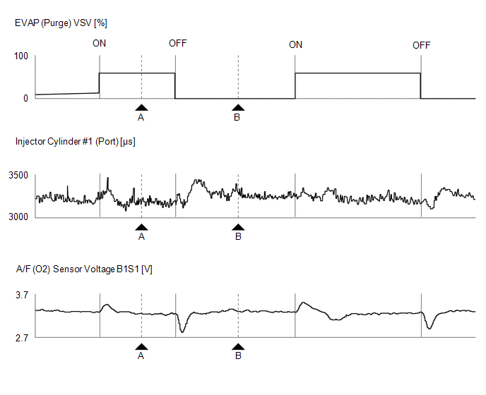 | Activate the EVAP Purge VSV | - | ▲A | ▲B |