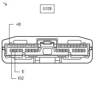 | G128-19 (IG2) - Body ground | Power switch on (IG) | 11 to 14 V |