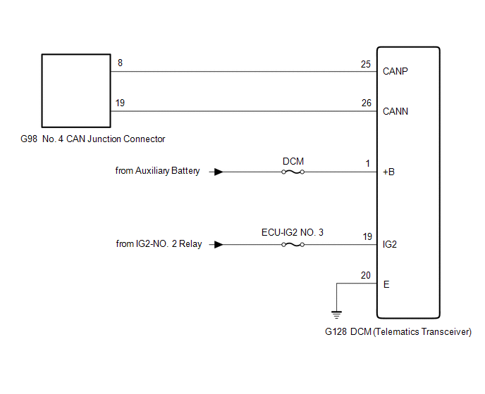 | 1. | CHECK FOR OPEN IN CAN BUS LINES (DCM (TELEMATICS TRANSCEIVER) BRANCH LINE) |