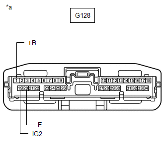 | G128-19 (IG2) - Body ground | Engine switch on (IG) | 11 to 14 V |