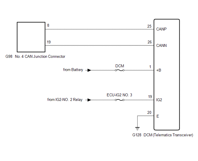 | 1. | CHECK FOR OPEN IN CAN BUS LINES (DCM (TELEMATICS TRANSCEIVER) BRANCH LINE) |