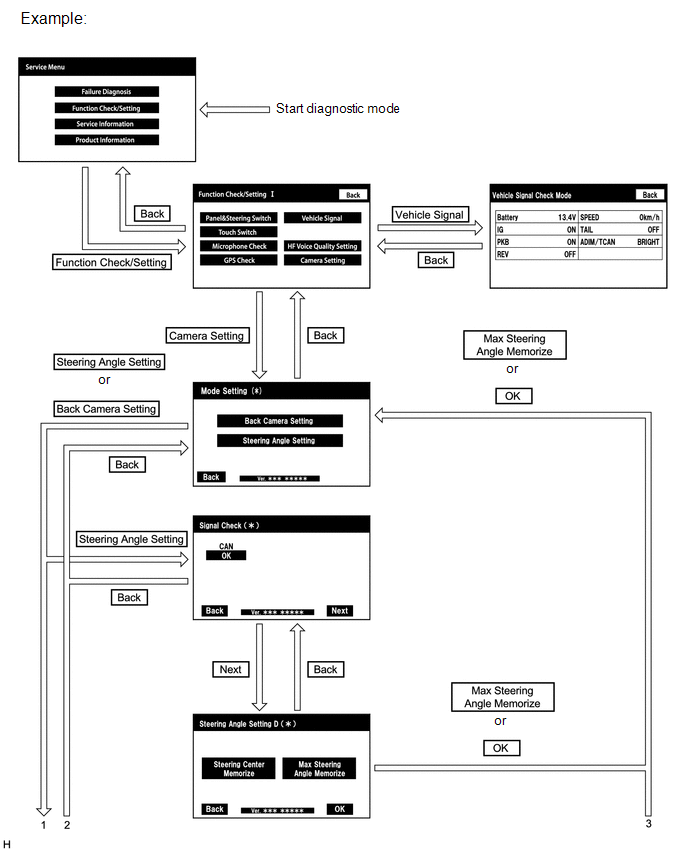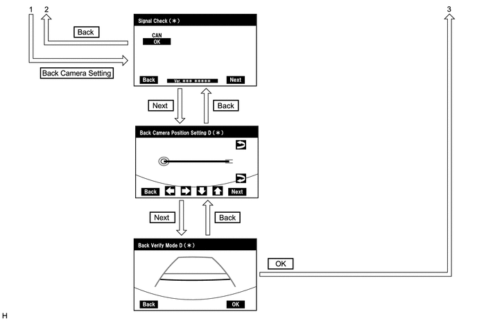 (3) When the screen changes to the "Mode Setting" screen, select "Back Camera Setting" to display the "Signal Check" screen.